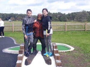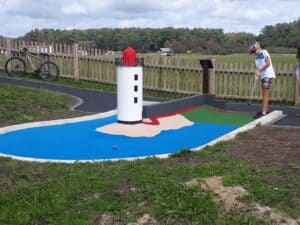 Many visitors were really pleased to get a chance to play on the new course and were very enthusiastic about it. Hazel from Burry Port felt that it was much better laid out than the previous course, and the large-scale obstacles and bright colours made it much more appealing to children. Her own son, Rhys, 5 really liked the course and had visited it three times already managing to get a hole in one each time which he was very proud about.